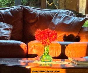 This fall in the early morning, Jim and I were enjoying coffee in our chairs, looking out into our back yard. For a brief moment, the sun shone brightly on a vase of flowers. It was beautiful, but only for a moment. I captured the image–a brief moment in time.