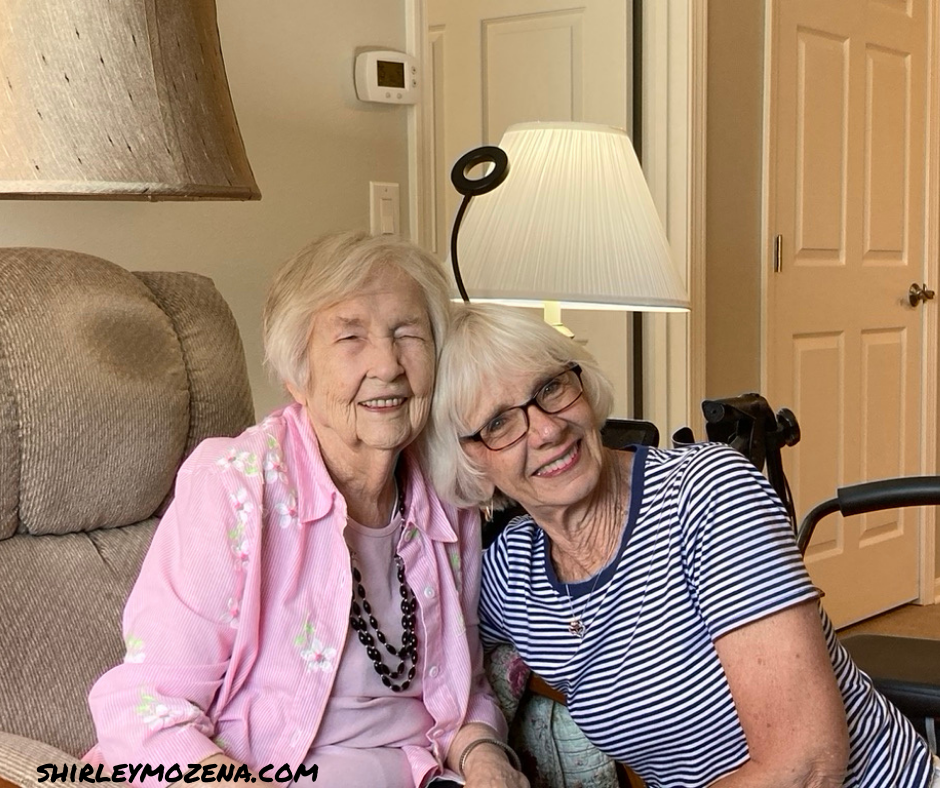 I knocked on the white door of her apartment and heard a faint voice, “Come in.” And there she was, wearing a pink top and black pants. It was like seeing my mother again. I choked a little, “Hi, Aunt Ruth, it’s Shirley,” I told her. Just like my mother, she could barely see because of the macular degeneration she suffered from. Her voice sounded like Mom’s voice. Her delicate hands, as she gestured, were like Mom’s hands, too.