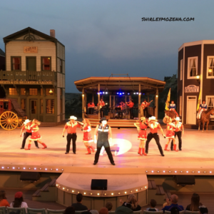 During the summer, the town produces the Medora Musical at a hillside amphitheater, complete with professional sets that rolled on tracks, revealing the beautiful Badlands. There were talented singers and dancers from North Dakota and beyond. We enjoyed excellent music, comediennes, with a patriotic spirit.  We sat in comfortable seats looking off toward the canyon behind the stage.  A blood red half moon glowed in the darkening skies.