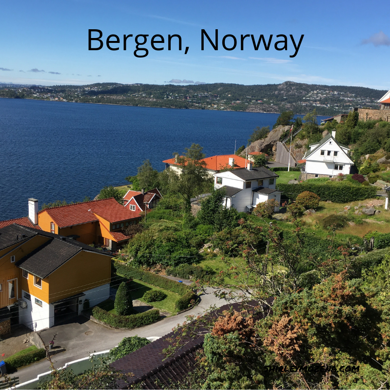 We took a seven hour train ride from Oslo to Bergen, Norway, boarded our ship and stayed in the Bergen Harbor overnight and the next day. It was a beautiful day with sunshine and outstanding views. We were told we were fortunate to have such a nice day. Lots of rain in Bergen!